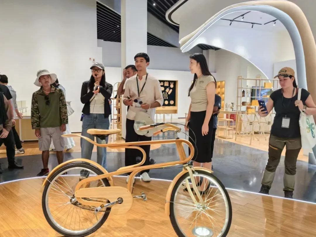 共建“一帶一路”國家“以竹代塑”科技創(chuàng)新研修班學員在邵武“竹立方”生態(tài)科創(chuàng)館欣賞竹制自行車。(受訪者供圖) 今年5月,來自老撾、所羅門群島、加蓬等發(fā)展中國家的竹藤領域官員及技術人員,走進第二屆中國(武夷山)竹業(yè)博覽會與南平竹企,被中國竹制品的技藝、科技與創(chuàng)意深深震撼。 “中國把竹資源利用做到了極致!在這里,我看到竹子不僅能做烹飪廚具,還能造房子、做家具。”所羅門群島林業(yè)專員朱莉婭·塔古福奧阿·艾馬埃亞感慨。她計劃帶一張竹制桌子回國,向國人展示竹子的無限可能。 在邵武“竹立方”生態(tài)科創(chuàng)館,學員們紛紛試騎竹制自行車;在武夷山竹刻藝術館,他們被精美的竹雕技藝折服;在建陽豐產竹林示范片,他們深入了解竹林培育技術,筆記本上記得密密麻麻…… “感謝中國發(fā)起‘以竹代塑’倡議!”加蓬旅游部官員儒勒·塞薩爾·阿塞萊·勒庫萊齊亞伊表示,“在中國的帶動下,加蓬也逐漸開始用竹子來替代塑料等材料。在南平,我親眼看到竹子構筑的美麗空間,這讓我堅信,綠色發(fā)展是全人類的共同選擇。”